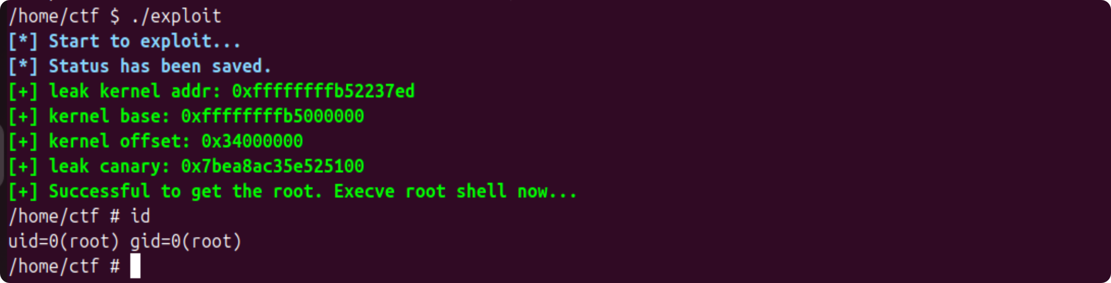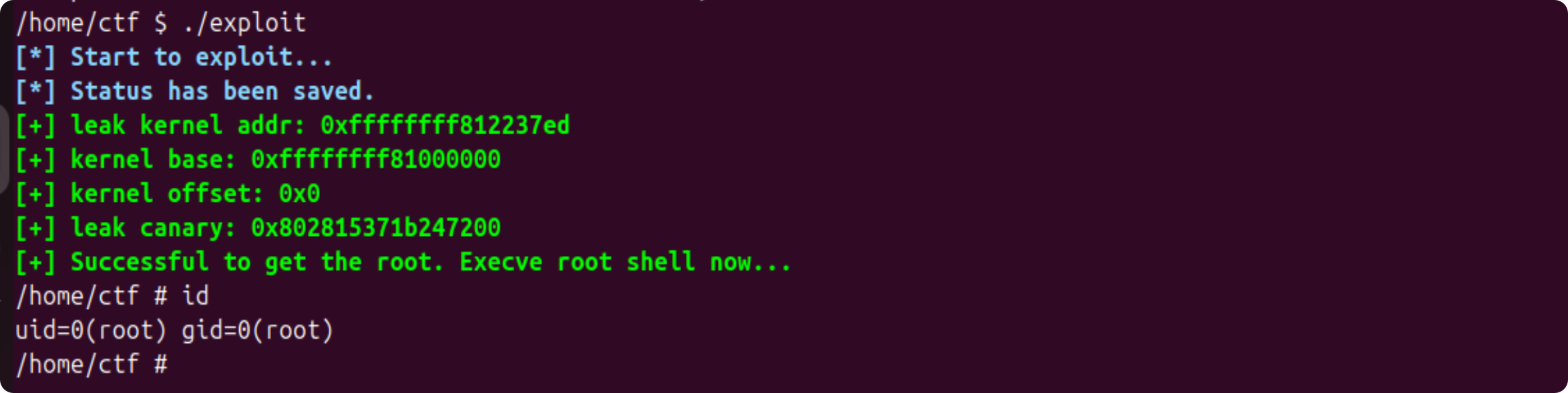 - 信息泄露先行:必须首先泄露内核地址和canary